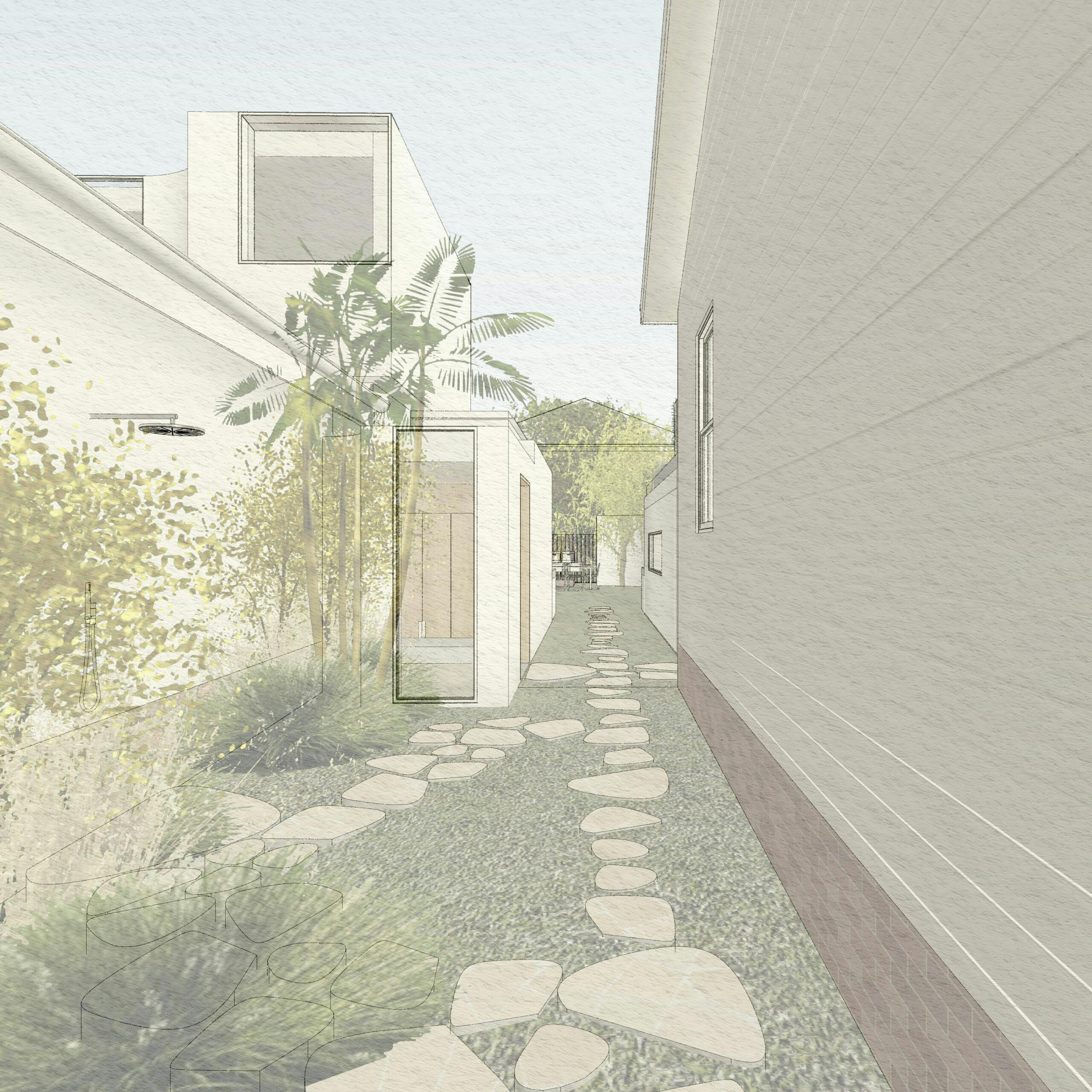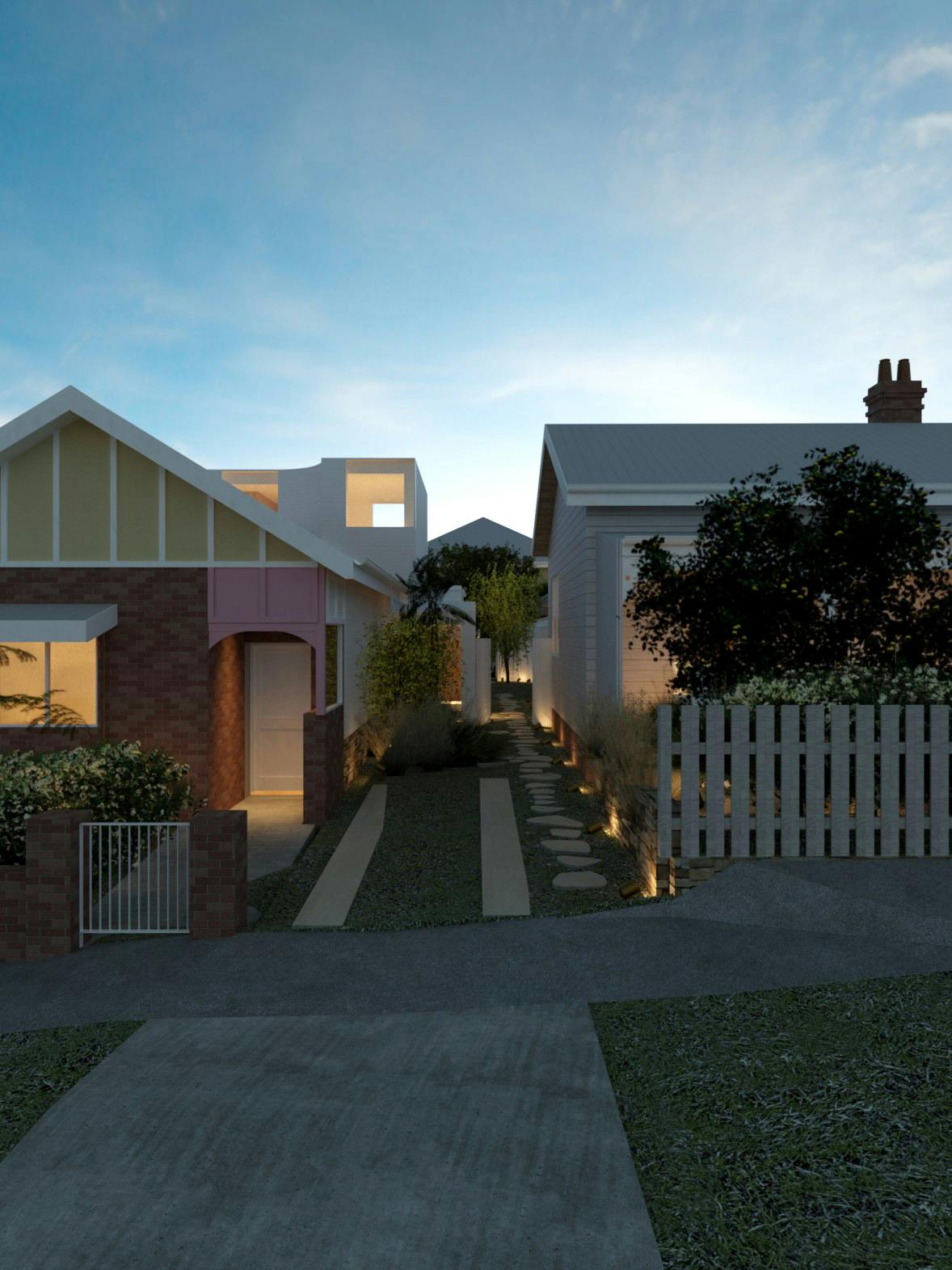 A pair of two-storey garden pavilions are introduced to two of Bronte’s oldest homes. This consolidated, multi-generational approach seeks to ensure the existing century-old cottages endure for centuries to come.